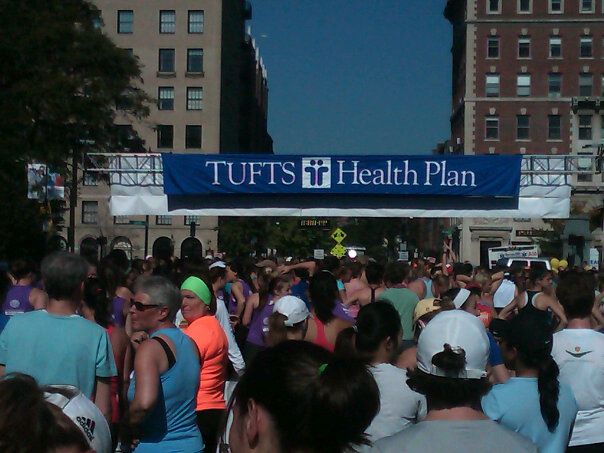I met my friend Alison at her house and we took the train to Boston Common to meet our friend, Chrissy. I kept thinking I didn't want to do the run because it was so hot, but then I'd just think of it as a training run for the marathon. We made our way through the sea of women (and some lucky men!) and found Chrissy. After we checked our bags and some chatting while stretching, we headed over to the start line. I don't know about you, but I like to be right in the middle - Not up front because I'm just not that fast! But, I don't like to be in the back either because it's just too far away from the start. Right in the middle is juuust right for me!